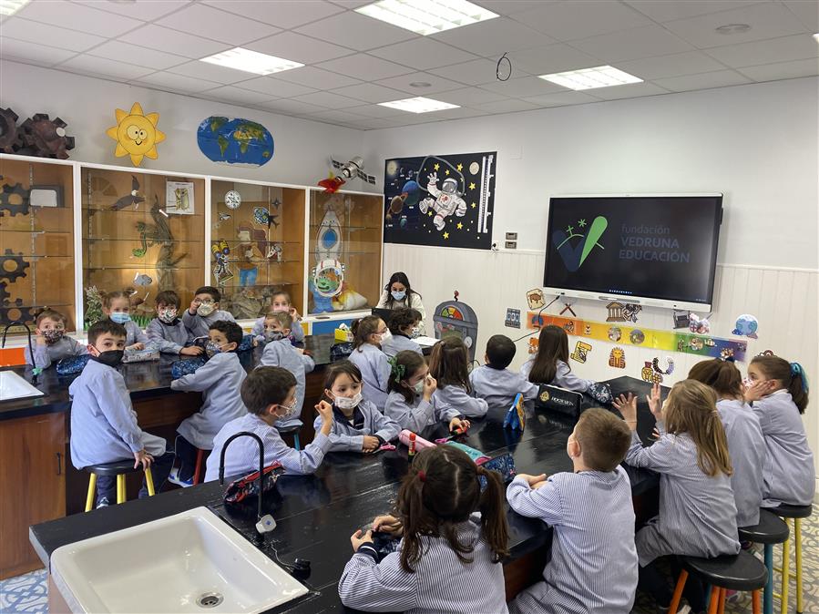 Llevar a cabo el Vedrunero 5.0 ha sido de lo más emocionante porque ha venido con una sorpresa añadida y es que… ¡Queda inaugurado nuestro laboratorio! La II Semana de la Ciencia en la etapa de Primaria ha tenido esta gran sorpresa. Un espacio que invita a acercarnos al maravilloso mundo de la ciencia, de una manera práctica y manipulativa, aprendiendo y descubriendo que la ciencia no entiende de género. Por ese motivo, hemos conocido el trabajo de Graham Bell, elaborando los más pequeños de la etapa un teléfono. A través de la creación de tubos musicales hemos experimentado la transmisión del sonido, tal y como nos enseñó Galileo Galilei. Cecilia Payne ha sido la científica que nos ha llevado hasta las estrellas, teniendo constelaciones al alcance de nuestras manos, gracias a una manualidad con linternas. De la mano de Isaac Newton hemos comprendido su disco y la descomposición de los colores de la luz. Mária Telkes, más conocida como “solar queen”, científica pionera en el uso de la energía solar. De esta forma, aplicarán sus conocimientos para elaborar un proyecto sobre desarrollo sostenible. Y así, finalmente, llegamos hasta los mayores de la etapa, uniendo pasado y presente en el mundo de la cartografía, actualizando los conocimientos de James Cook y el uso del chromebook y “MyMaps”.