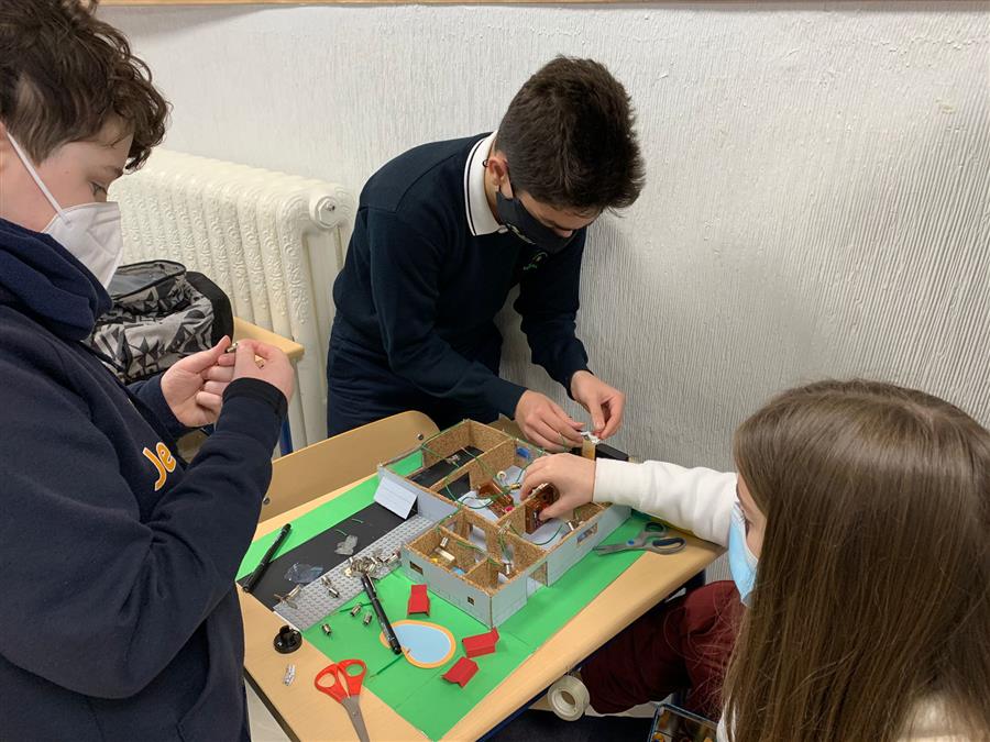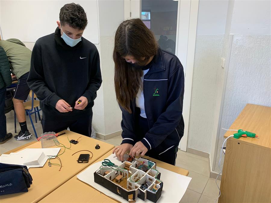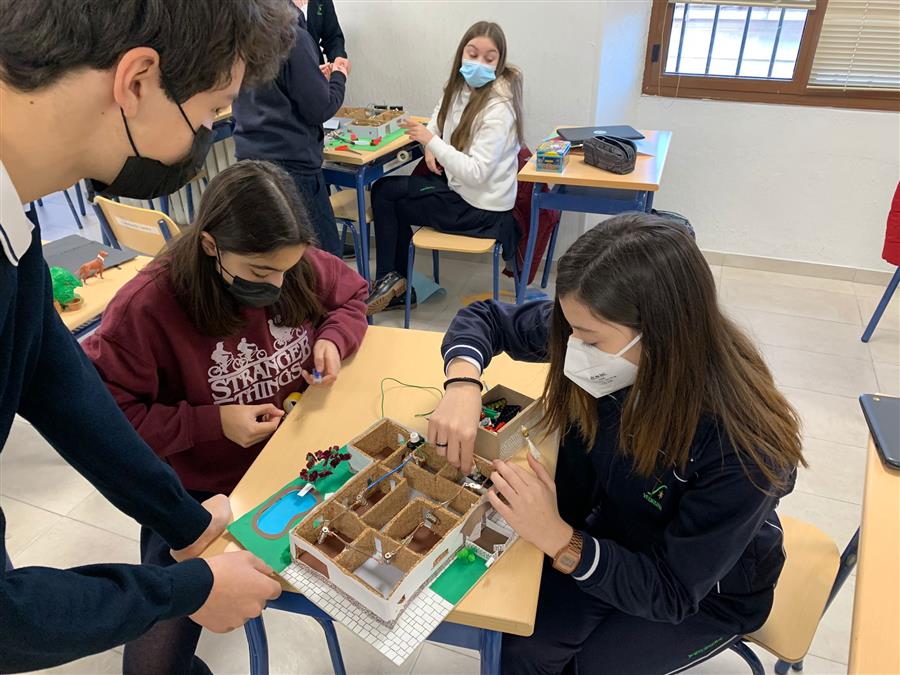 Así lo hemos comprobado en algunos de los proyectos realizados con nuestros alumnos. Un ejemplo de ello es el proyecto Smart House, realizado en tecnología con los alumnos de 3° ESO. Se les propuso realizar una maqueta de una casa en la que incluyeran circuitos eléctricos estudiados en clase. Para ello, y como si de un proyecto real se tratase, dibujaron el plano de la casa en 2D y 3D utilizando herramientas digitales. A continuación, planificaron la lista de materiales, herramientas u otros recursos necesarios para su construcción. Por último construyeron la casa, incluyendo tanto los circuitos eléctricos como elementos de decoración.