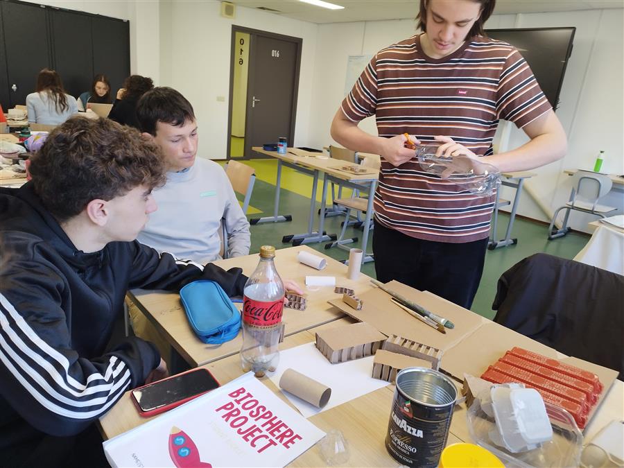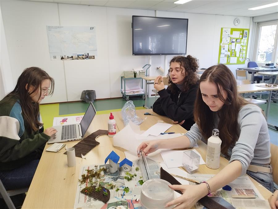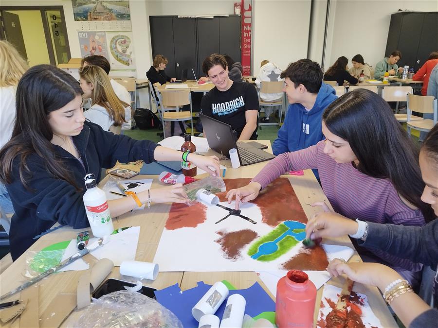 Tras este primer shock al entrar en el Dalton y ver el aparcamiento con montones de bicis comenzamos a trabajar en el proyecto que desarrollamos a lo largo de la semana: intercambio de información entre los alumnos sobre las medidas de sostenibilidad implementadas en los dos colegios y creación de una biosfera a partir de materiales reciclados. Pero sin duda, una de las actividades que más disfrutamos fue un escape room en bicicleta por la ciudad de Dordrecht, así como la visita a Rotterdam, donde pudimos ver más ejemplos de medidas sostenibles.