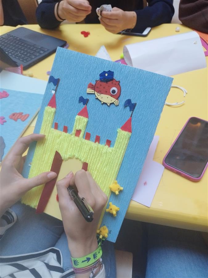 Pero, sin duda, el plato fuerte ha sido la creación de un cuento de texturas para niños con discapacidad que han tenido que diseñar en grupos y posteriormente exponer a algunos de nuestros alumnos con dificultades.¡Un placer ver sus caritas y su afán por experimentar con las diferentes texturas! Dicho material estará a disposición del Equipo de Orientación de nuestro cole, con lo que más niños podrán disfrutar de ellos y aprender con ellos.