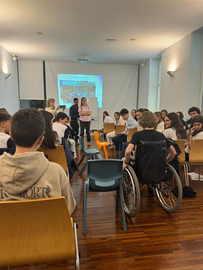 Pero ,como os decíamos al comienzo, el contacto con el colegio Dalton no terminó ahí.La segunda parte de la aventura ha tenido lugar en nuestro cole.Durante una semana hemos acogido no solo a alumnos holandeses sino también italianos. El proyecto en esta ocasión se ha centrado en dos aspectos ,por un lado , la inclusión , para lo cual hemos contado con la colaboración de varias asociaciones como ASPAS o ASPAYM que nos han impartido diferentes talleres sobre el lenguaje de signos y movilidad reducida y ,por otro lado, la sostenibilidad ,para lo que hemos contado con la colaboración del Ayuntamiento.Allí fuimos recibidos por Alicia Villazán ,Agencia de Innovación y Desarrollo Económico ,que nos dio a conocer las medidas a favor de la sostenibilidad que se están llevando a cabo en Valladolid.