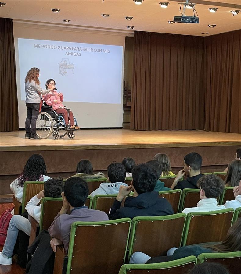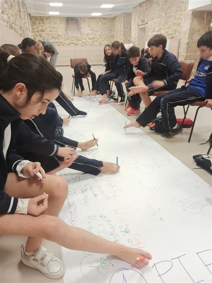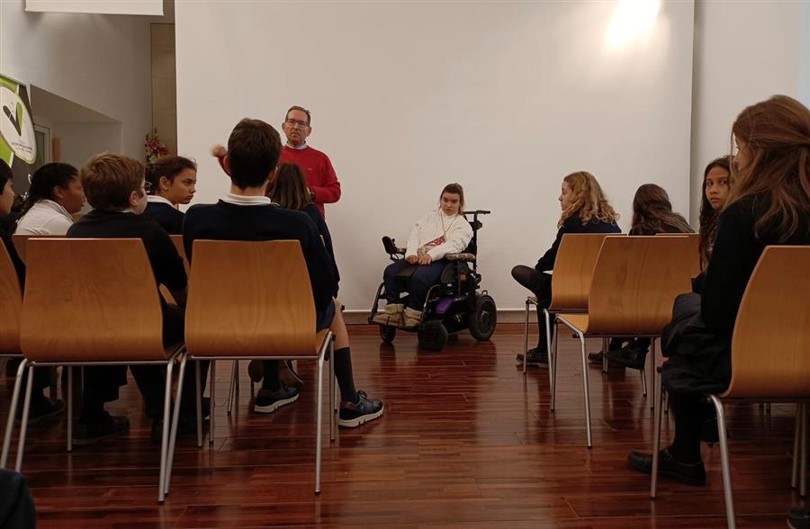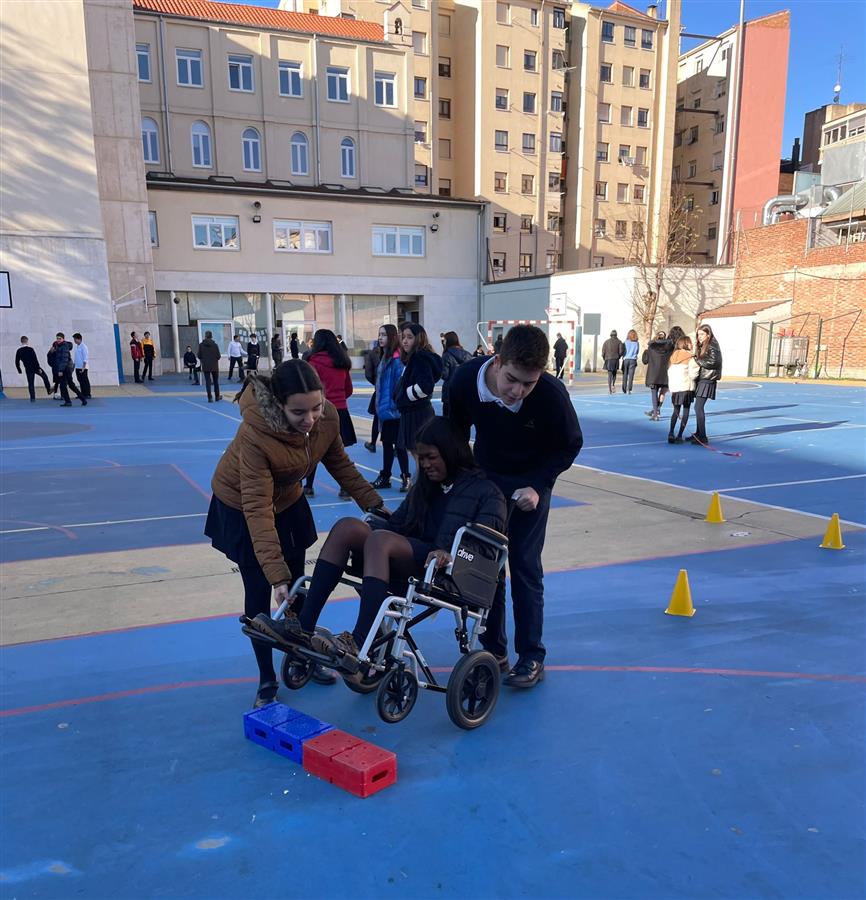 Algunos alumnos llevaron a cabo esta serie de iniciativas dentro del centro (circuito en silla de ruedas, pintar con boca y pies, con la mano no dominante, baloncesto, bolos y boccia sentados, fútbol adaptado a movilidad reducida…) y otros salieron fuera, para identificar barreras arquitectónicas y urbanísticas en el entorno próximo al colegio. Después de todas estas actividades escribieron una carta formal dirigida a la administración local describiendo los inconvenientes encontrados en su entorno más próximo y solicitar, a su vez, algunas medidas. Al finalizar, tuvimos la suerte de compartir charlas experienciales con dos personas maravillosas: Rocío Molpeceres y Lucía Puerta, con parálisis cerebral y en silla de ruedas. Nuestro objetivo era sensibilizar sobre el tema y dar visibilidad a la minoría más amplia en el mundo, las personas con diversidad funcional.