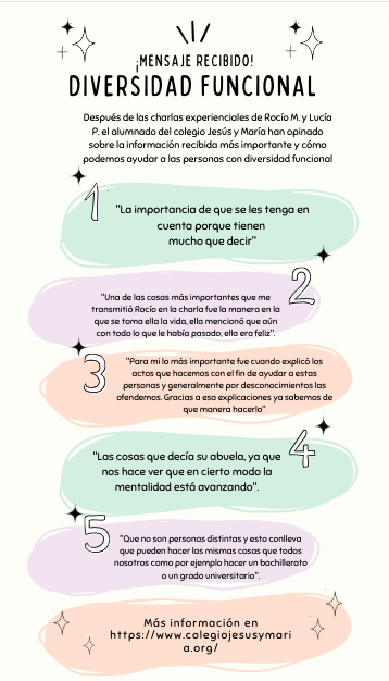 El día 3 de diciembre celebramos el día internacional de las personas con diversidad funcional. En nuestro colegio, el viernes día 2 realizamos una jornada llena de actividades y charlas donde alumnado y profesorado pudimos comprobar y empatizar con las características de aquellas personas que tienen diversidad funcional y que requieren de alguna adaptación.